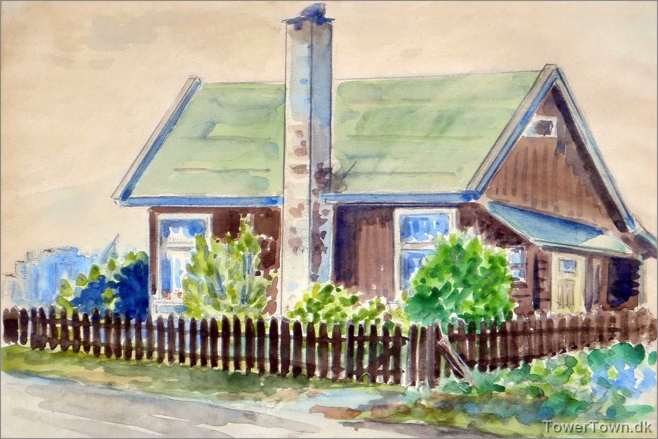Akvarel lavet af Svends bror Viktor i starten af 60'erne, mens der stadig var pejs i huset.