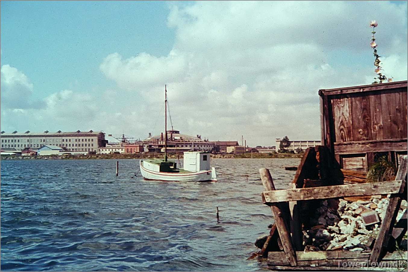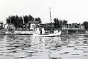 Plougmann's fiskekutter Diana i starten af 50'erne. Hovedgaden 24, 26 og 28 i baggrunden. (Foto: Chr. Plougmann).